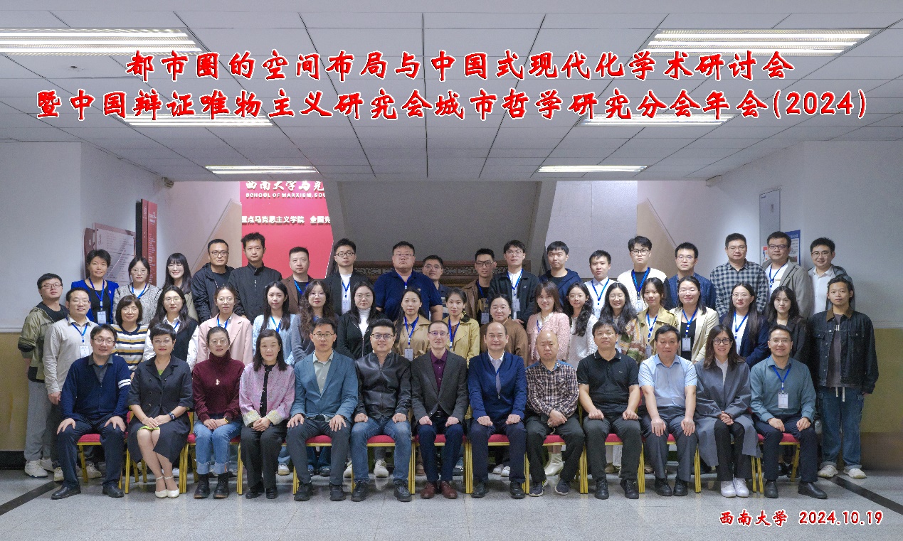 据悉,10月18日至20日,由中国辩证唯物主义研究会城市哲学研究分会、西南大学365英国上市集团、中国社会科学院社会发展研究中心、中国社会科学院哲学研究所《哲学研究》编辑部和《江海学刊》杂志社联合主办,西南大学西方马克思主义研究所和西南大学古典思想传统与欧美马克思主义发展研究科研团队承办的“都市圈的空间布局与中国式现代化”学术研讨会暨中国辩证唯物主义研究会城市哲学研究分会年会(2024)在我院顺利召开。