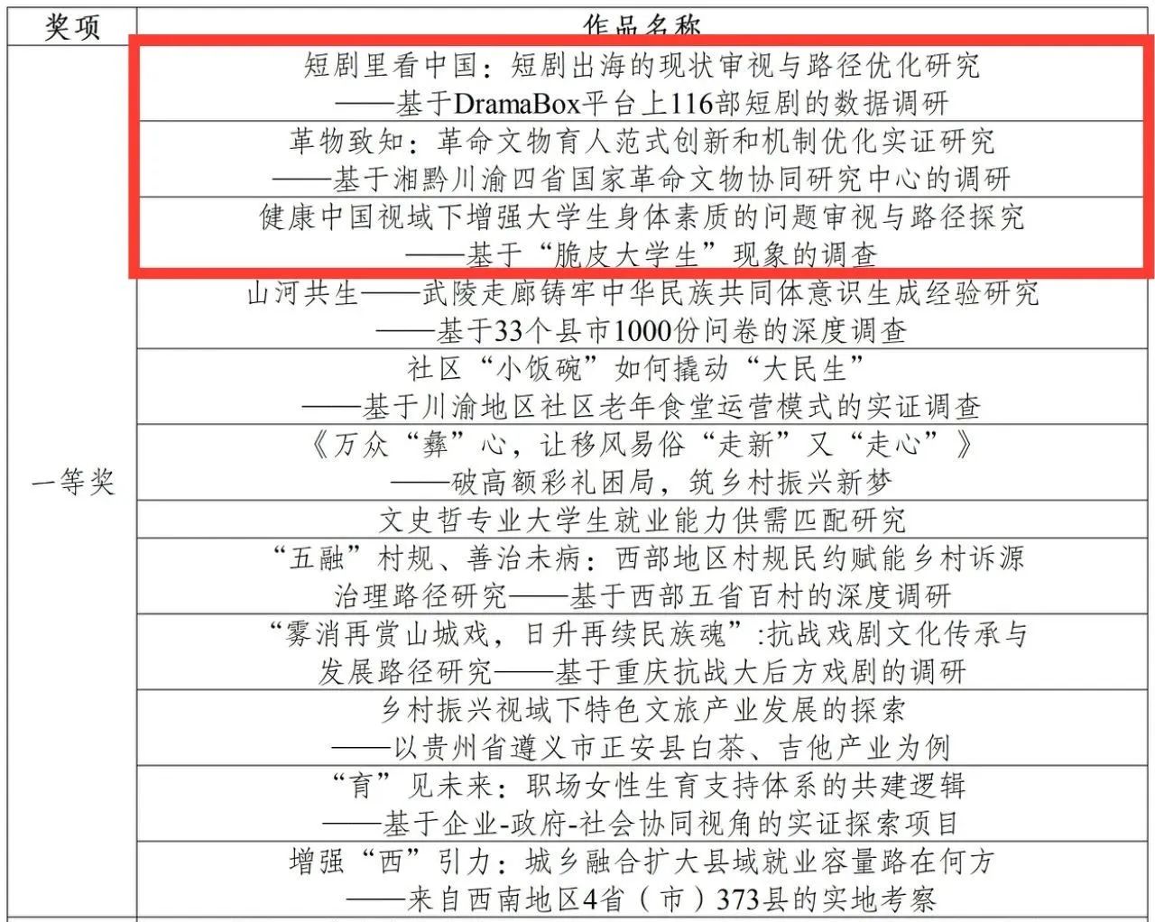 近日,西南大学第九届"含弘杯"学生课外学术科技作品竞赛圆满落幕。365英国上市集团6支参赛团队历经资格初审、校级复赛、终审决赛层层选拔,荣获一等奖3项、二等奖3项。其中《短剧里看中国:短剧出海的现状审视与路径优化研究》《革物致知:革命文物育人范式创新和机制优化实证研究》等4个项目被学校推荐参加“挑战杯”重庆市选拔赛。学院凭借团体总分930分的成绩,捧获竞赛最高荣誉“含弘杯”称号。