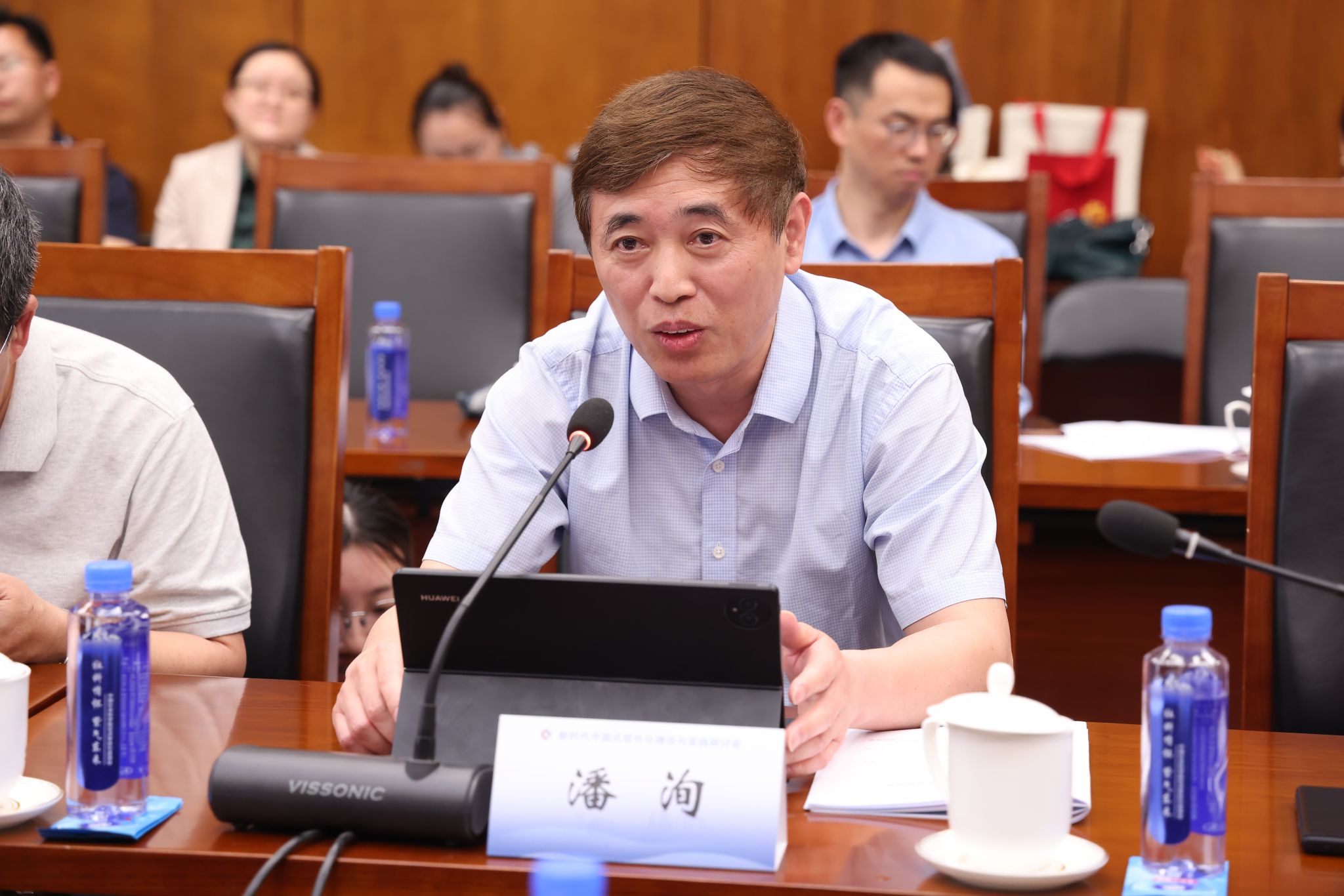 6月17日下午,潘洵教授参加全国中国式现代化研究机构负责人联席会议并作交流发言。他介绍了西南大学中国式现代化研究院基本情况、运行机制、研究重点和特色,围绕中国式现代化理论和实践研究重大选题同与会专家学者进行了深入探讨,并就进一步提升全国中国式现代化研究机构合作、建立长效机制、加强学术共同体建设等提出意见建议。