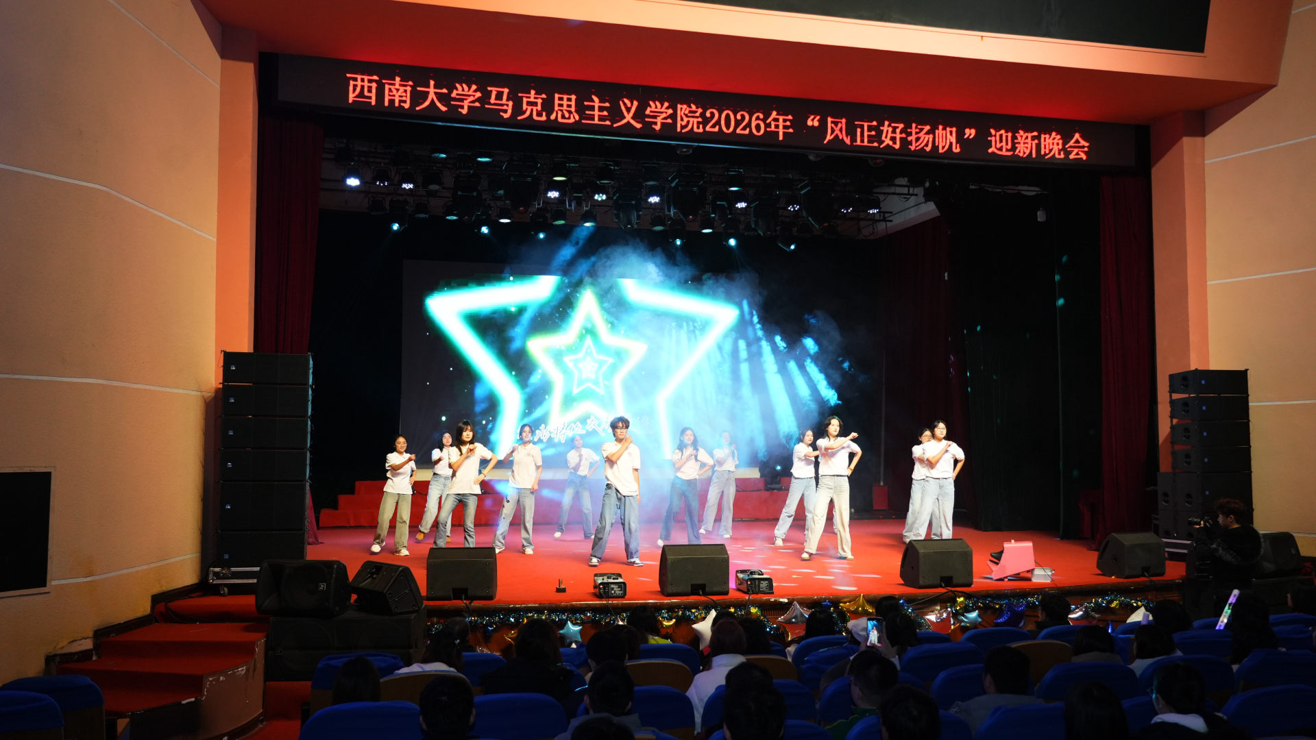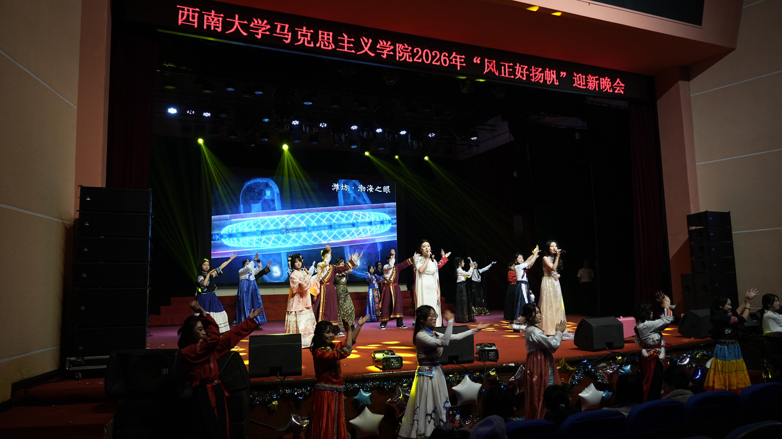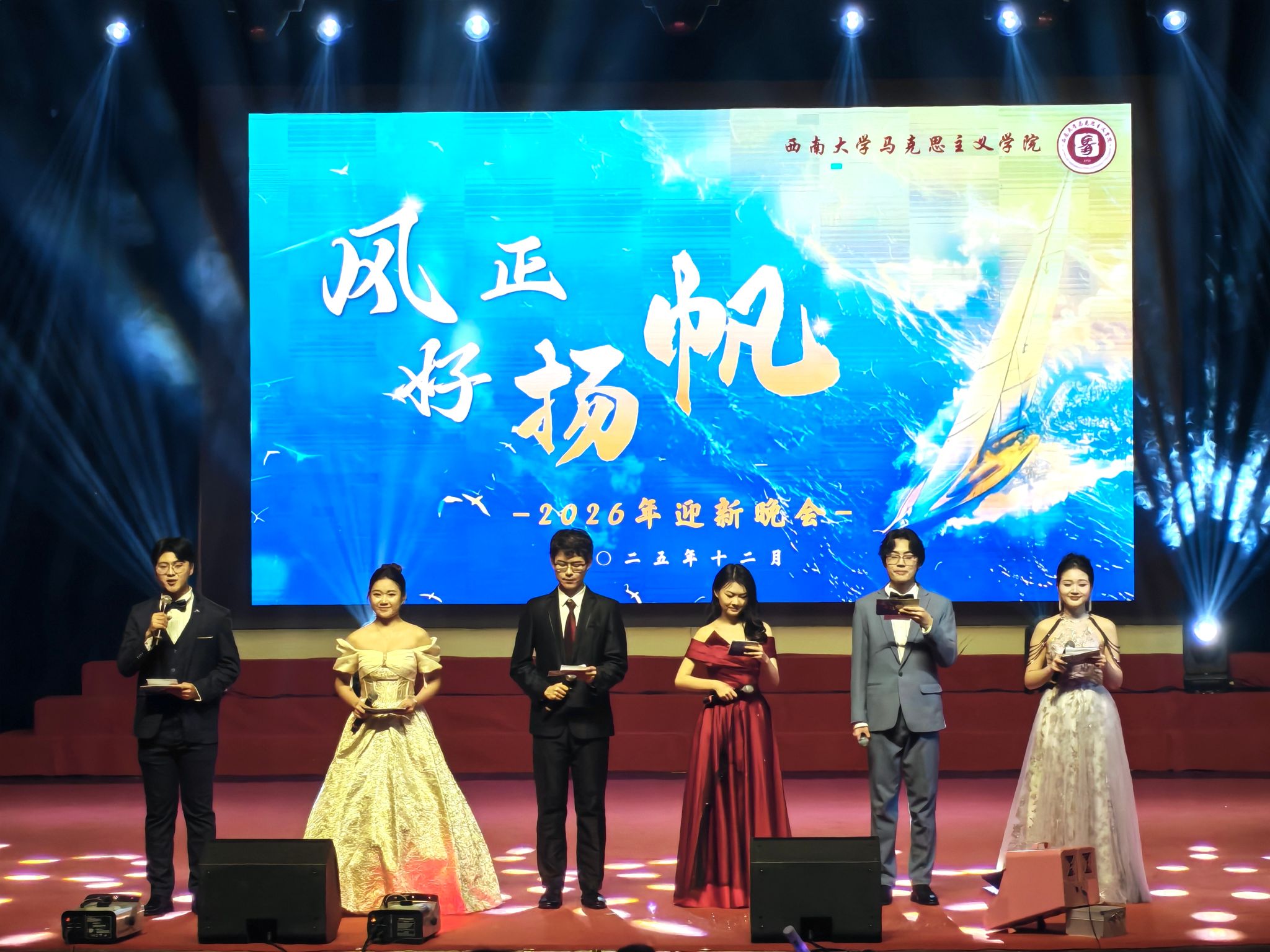 12月14日晚,西南大学365英国上市集团2026年“风正好扬帆”迎新晚会在光大礼堂温情上演。在辞旧迎新的美好氛围中,学院领导、各系部教师及学生齐聚一堂,以歌舞寄情、以诗言志,激励马院人在时代东风的指引下开好局、起好步,共同擘画前行航程。