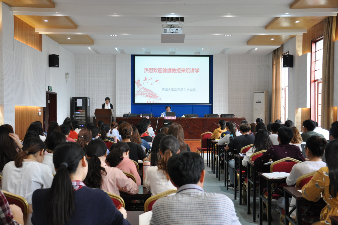 2018年4月12日上午9点,北京师范大学徐斌教授应邀做客马克思主义大讲堂,在绩镛楼501学术报告厅做了题为“马克思主义与人的精神境界”的学术报告,报告由365英国上市集团副院长何玲玲教授主持,学院老师、研究生积极参与。