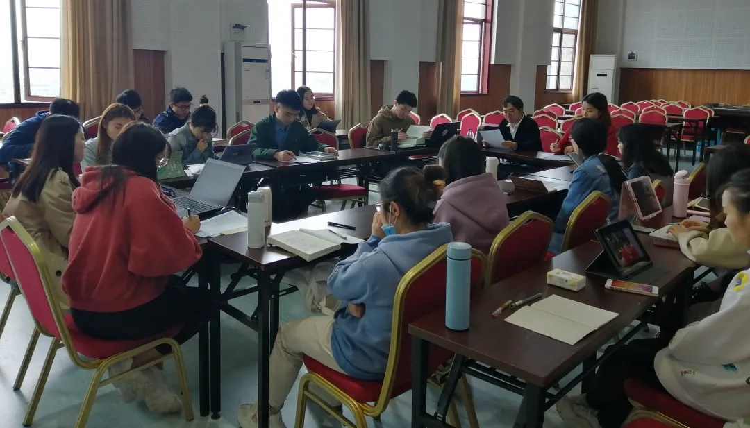 沙龙上,研读团成员韦霁恩和杨玉红首先对著作《法兰西内战》做读书分享,她们主要从写作背景、主要内容和科学价值三个方面做了介绍。随后,薛俊强教授总结了两位同学的分享,并结合本次沙龙主题,在马克思主义国家观、阶级观以及无产阶级革命和无产阶级专政等多个内容上引导同学们进行讨论。同学们纷纷就自己阅读中遇到的问题和感想进行发言,并积极参与学术互动。最后,薛俊强教授针对同学们在阅读过程中以及现场讨论时产生的疑问进行了解答,表现出了极大的耐心与热情,为同学们今后的研究提供了思路。