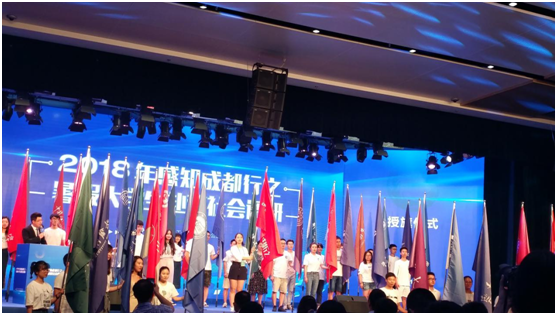 (图为启动仪式上,我院学子代表西南大学挥舞校旗,展示学校的风采)