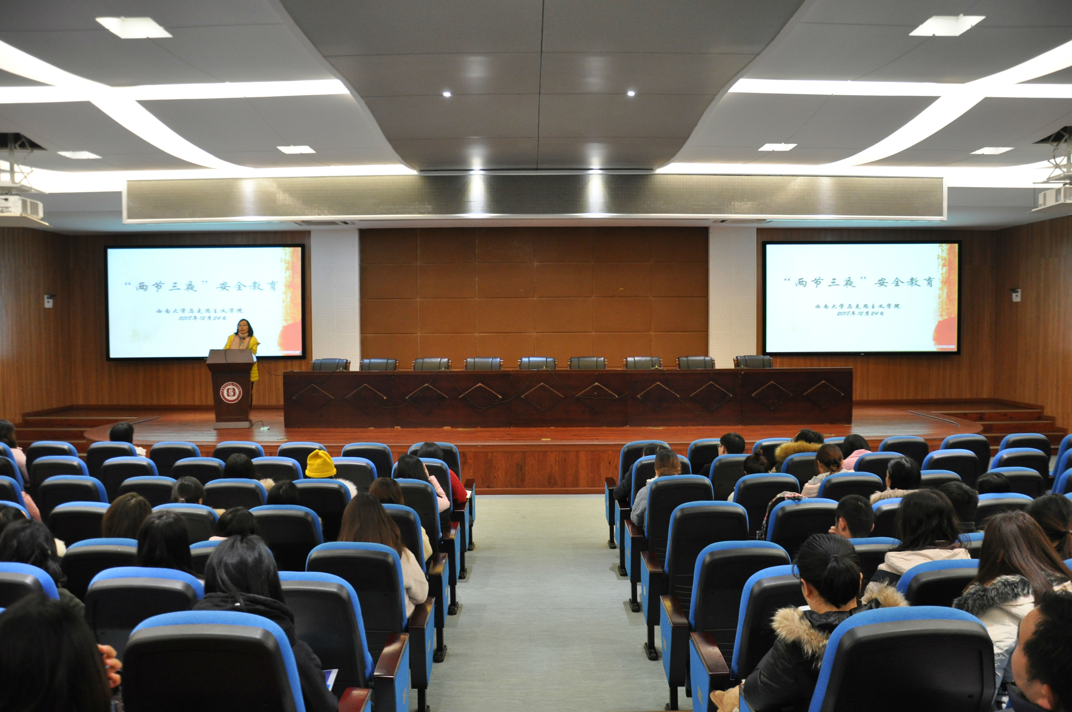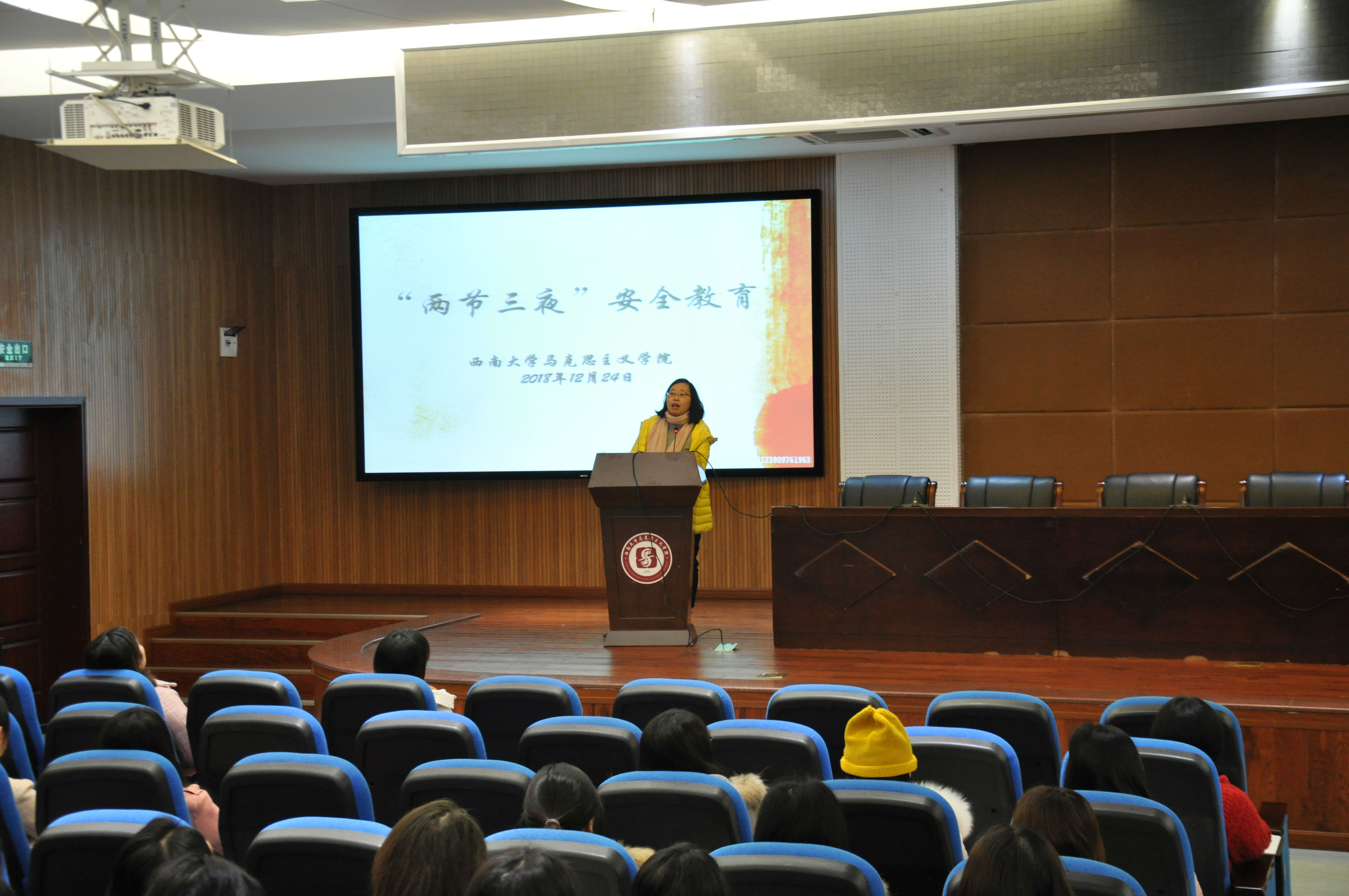 张梅书记以其坚定的政治立场和对学生强烈的责任意识进行了关于“三夜两节”的安全教育,同学们在安全教育大会的渲染下政治立场更加坚定、爱国情怀更加深切、作为马院学子所肩负的重任亦更加明确。