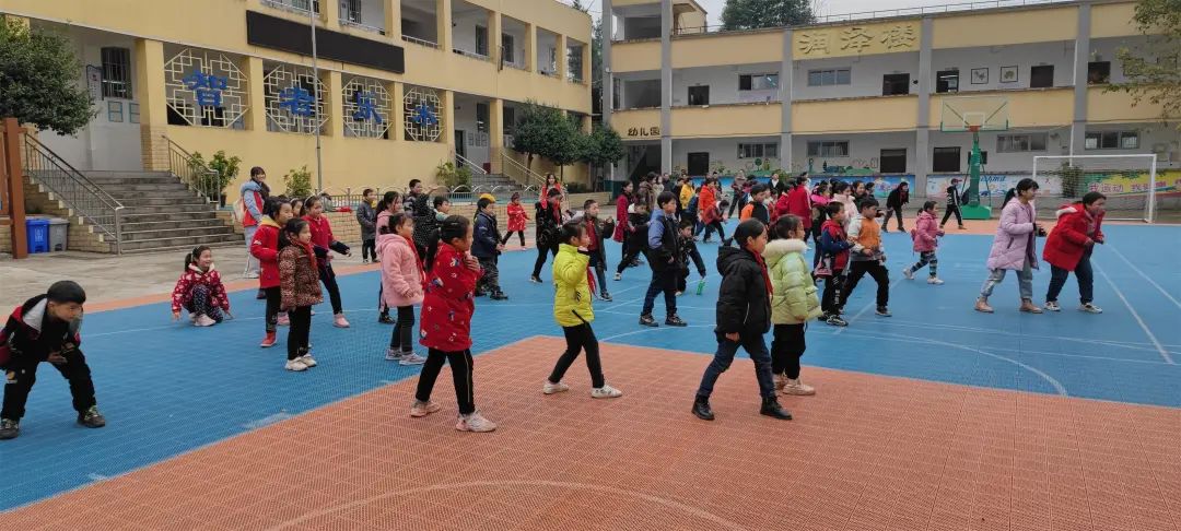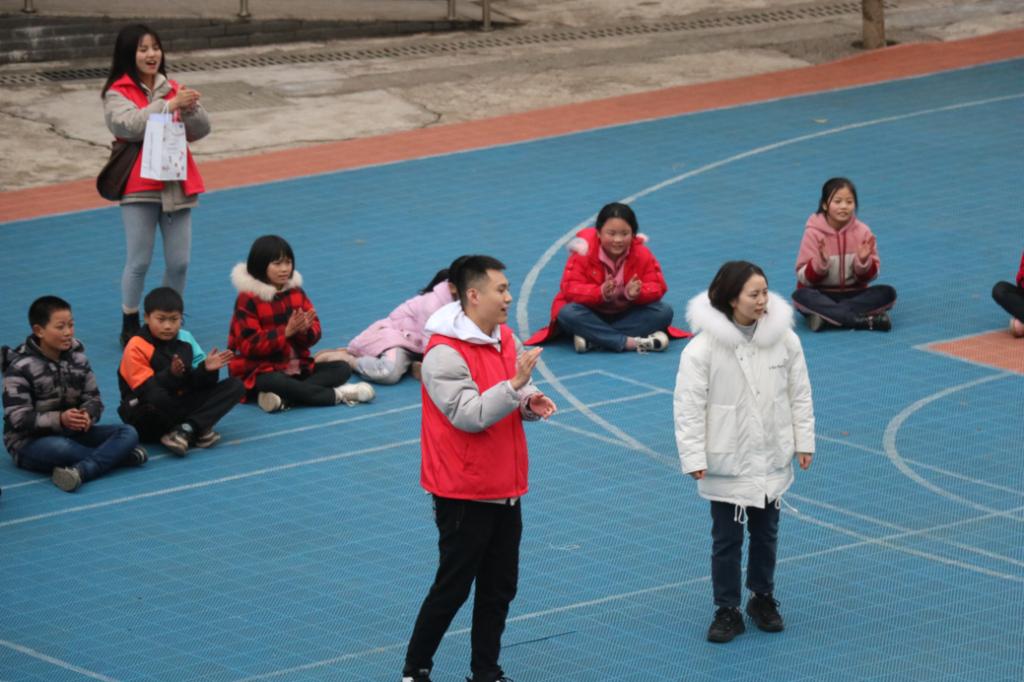 各个班级的课程结束后,队员们带领孩子们走出教室,来到操场展开了一节别开生面的实践体育课。首先是“击鼓传花”环节,队员邹欢与向桂英分别带领同学们一边同唱《上学歌》一边传递当做“花”的小礼品,并随机暂停,拿到“花”的孩子们积极配合,上台表演诗朗诵、唱歌、街舞等精彩的节目,赢得老师同学们的阵阵掌声。接着是“三二一木头人”环节,队员们带领孩子们重温童年,对第一名的孩子们发放小礼品,也对被淘汰的孩子们给予鼓励,寓教于乐,告诉他们有时候往往欲速则不达,一步一步踏踏实实地走才能行稳致远。最后,篮球运动教学环节,领队王飒老师与队员吕瀚东带领孩子们学习了运球、投篮、上篮的基本动作,并鼓励孩子们不仅要学习,更要积极锻炼身体,拥有健康身心才能拥抱美好生活。