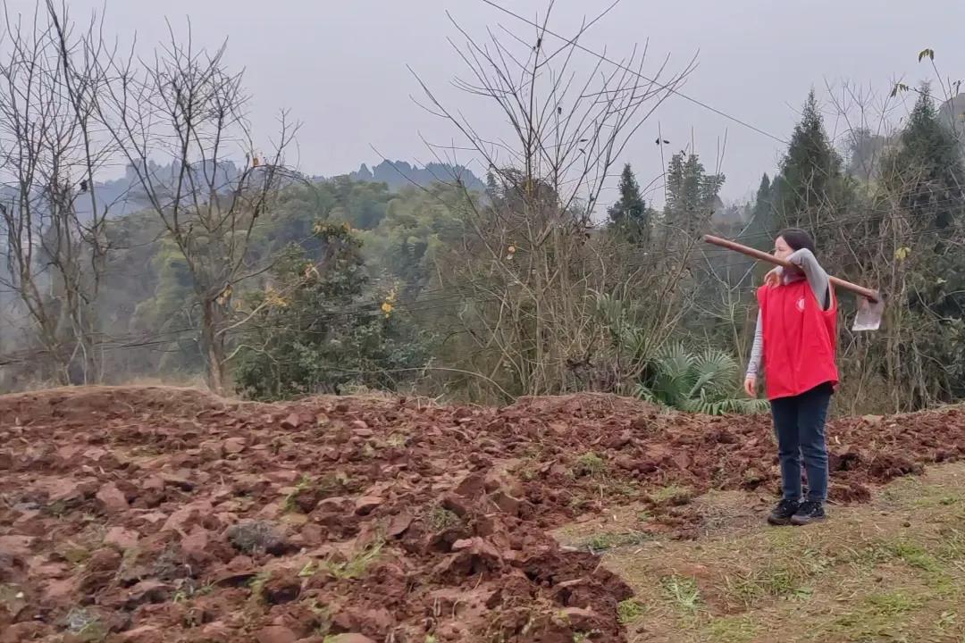 队员们中有未曾干过农活的新手,也不乏经验丰富的锄地能手,一场“能手”带动“新手”的传帮带活动在安兴乡的田野间热火朝天地展开了。队员彭德莲告诉了大家锄头的发力方式,握把、举臂、甩锄、翻土,一气呵成。“把土翻出来以后,还要用锄头把土块儿打碎,这样可以让土地更平整,庄稼可以更好的吸收养分。”