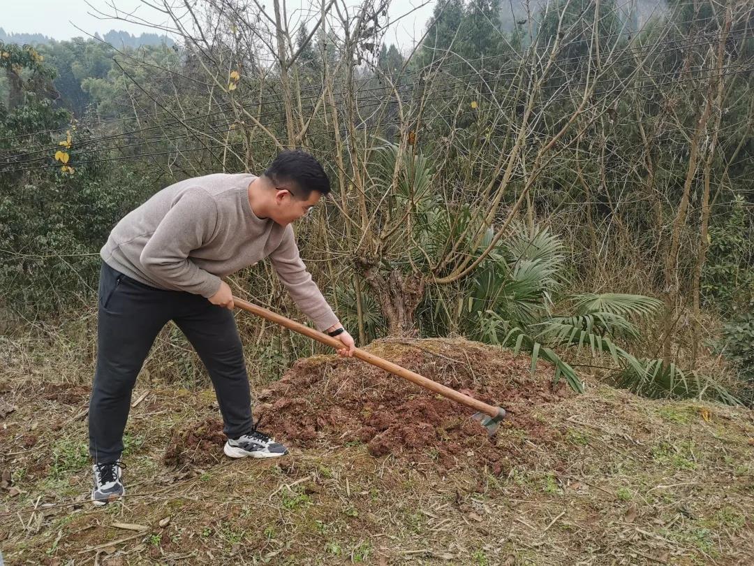 下午,队员们来到了一位小男生的家中,帮助他们家锄地。在上午的走访中队员们了解到,孩子与爷爷奶奶相依为命,爷爷生病行动不便,家中几乎靠奶奶一人操持,转年就要春耕,还有一亩多的地没有翻,队员们于是决定下午一起为小男孩家出一份力,带着从村民家中刚刚借来的锄头,开启了西大青马人的“锄”力之旅。
