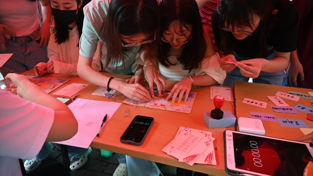 红色记忆重温过去。每一张卡片中都记录着历史的进程,每一块拼图都蕴藏着奋进的力量。参与者或积极寻找线索,回忆起党史重大事件,将写有时间的卡片与对应的事件、人物卡片拼接在一起,或根据中国各省市的位置和形状,搭建出一幅幅中国地理拼图,展现良好的地理素养和对祖国疆域的深刻认知。在此环节,大家泛舟历史长河,重温经典事件,领略大好河山,寻找红色文化的记忆碎片。