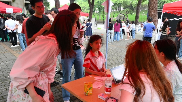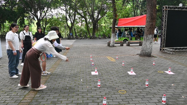 参与者在活动中学习知识、愉悦精神的同时,还获得了相应的物质奖励。凭借在每个活动展台获得的通关印章,参与者前往领奖处领取相应数量的套圈,套取精美奖品并合影留念。