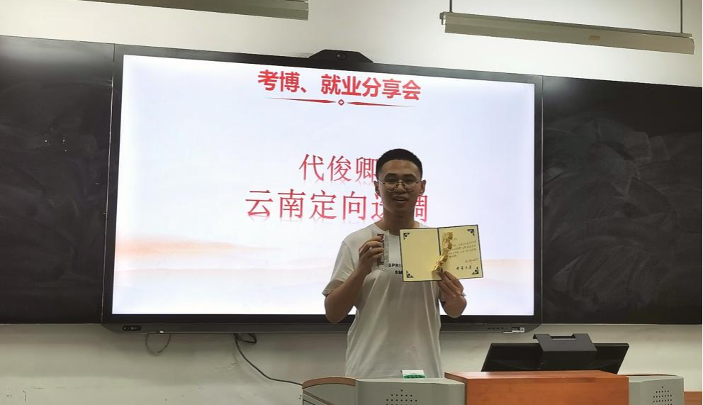 代俊卿同学通过自身和周围同学的考试经验,一方面介绍了不同地区定向选调报考的现状和条件,对重庆和云南选调的要求进行简要说明;另一方面他建议大家认真选择适合自己的岗位,劝诫同学们要根据自己的能力和毕业学校选择市、区级单位。