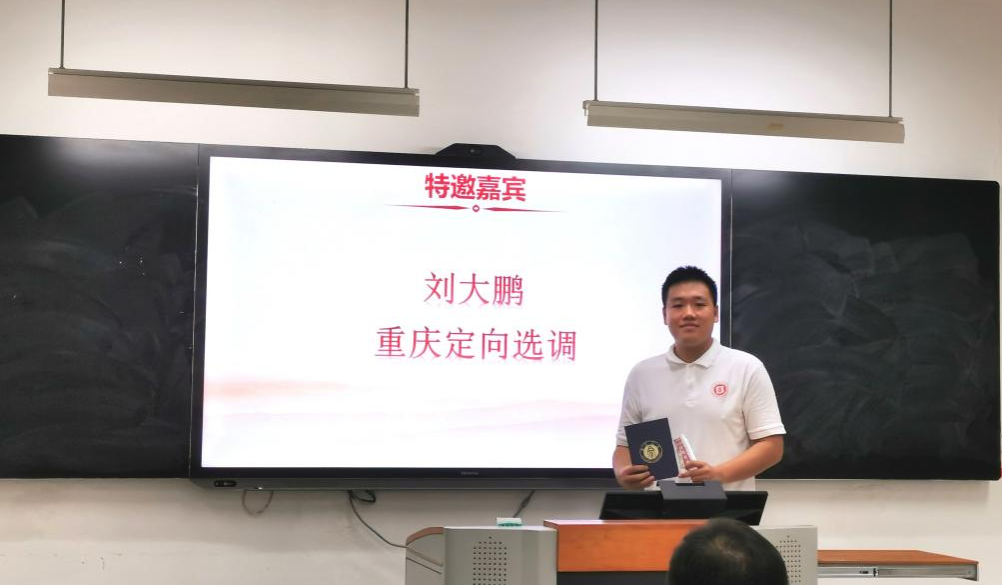 刘大鹏同志结合自身重庆定向选调考试经历,对国考、选调生、事业编的报考、备考等内容做了详细分析,并对同学们提了几点建议:第一,尽早确立目标、多与师兄师姐交流;第二,关注求职信息,丰富实习经验;第三,早日撰写毕业论文初稿,适时开始备考;第四,适当减压,避免攀比,专注自身努力。