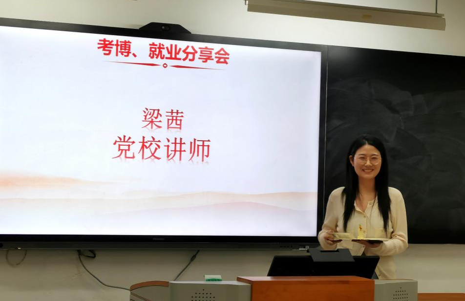 梁茜同学主要针对党校考试的面试环节介绍了相关经验,一是对于提前给定的题目,首先PPT制作要内容丰富,图文并茂,切忌出现政治错误;其次讲稿内容注意受众对象;最后试讲课可参考中央党校公开课、宣讲家网、共产党员网、全国青教赛等。二是对于现场抽到的题目,要提前准备一个属于自己的模板,包含引入、正文、小结、作业,要求过渡自然。