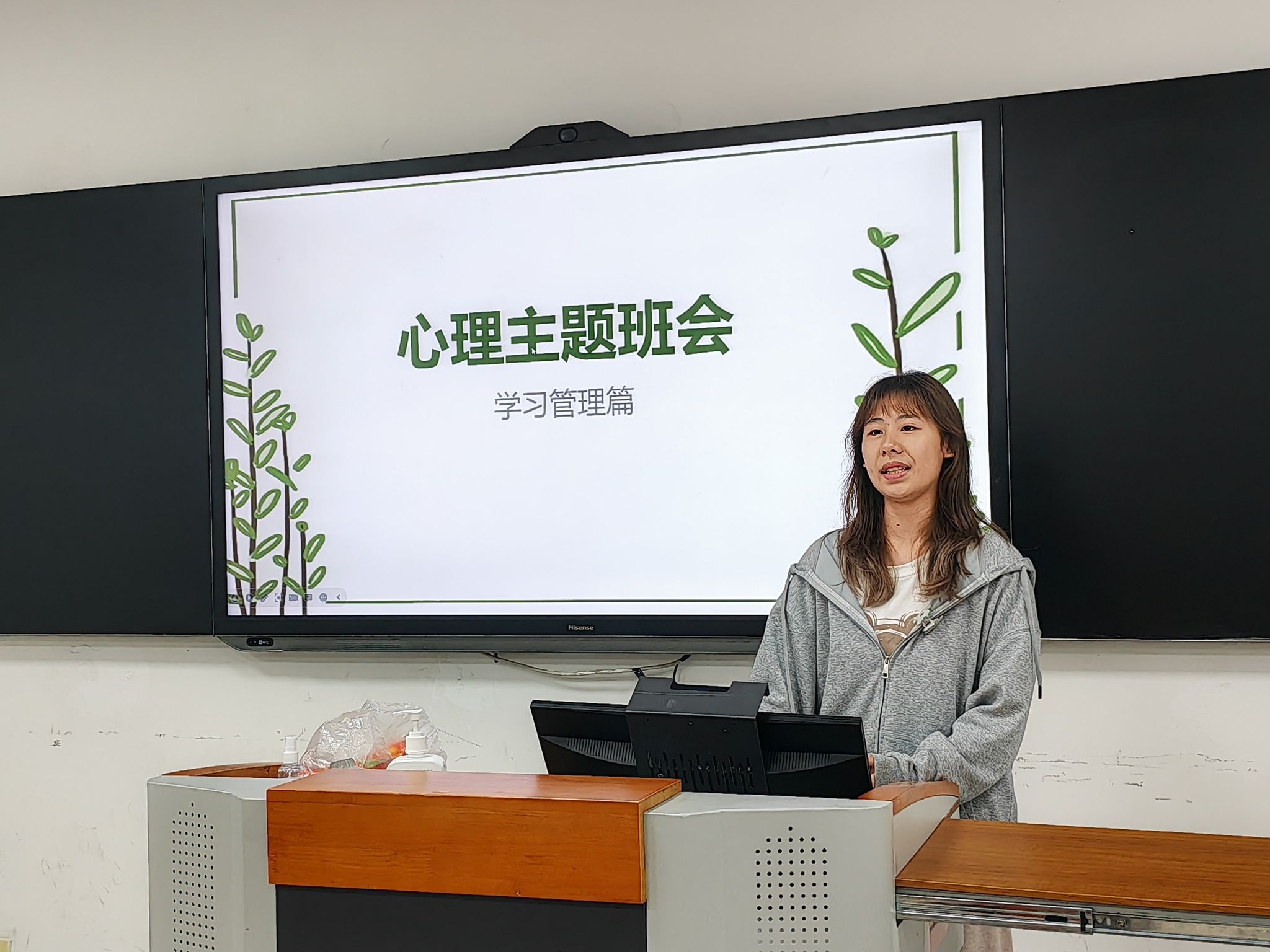 11月9日下午,思想政治教育师范二班以“心理信箱”为主题的心理班会在研一教室召开,心理与生活委员高学荣主持班会。高学荣同学从个人经历出发,为大家讲述了大学学习的方法和心理信箱的作用,并且通过有趣的小游戏让同学们深刻体会到了时间的珍贵。