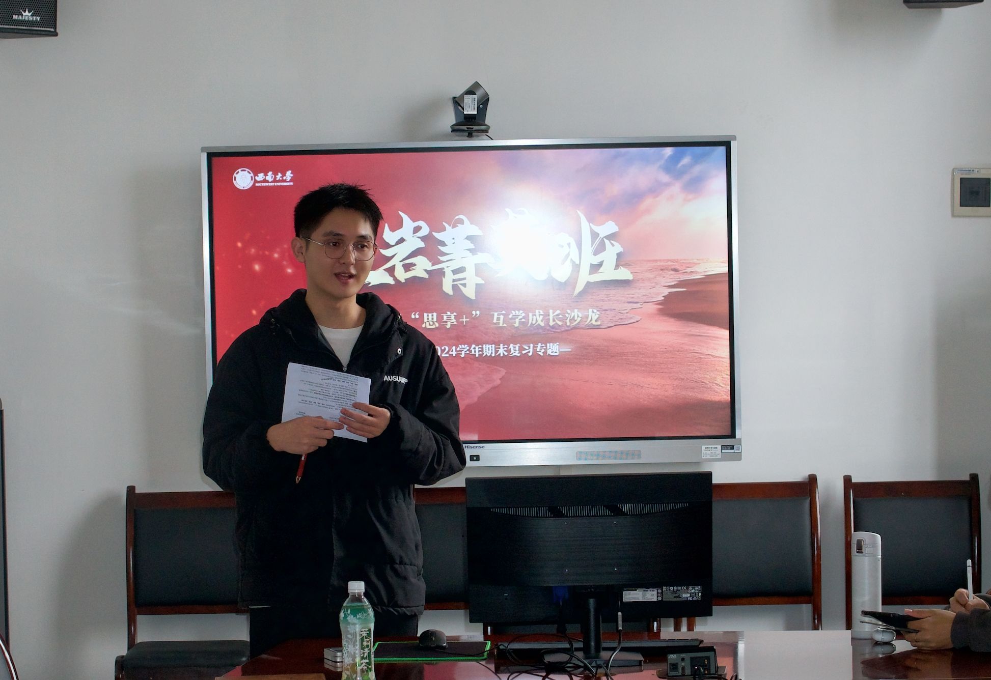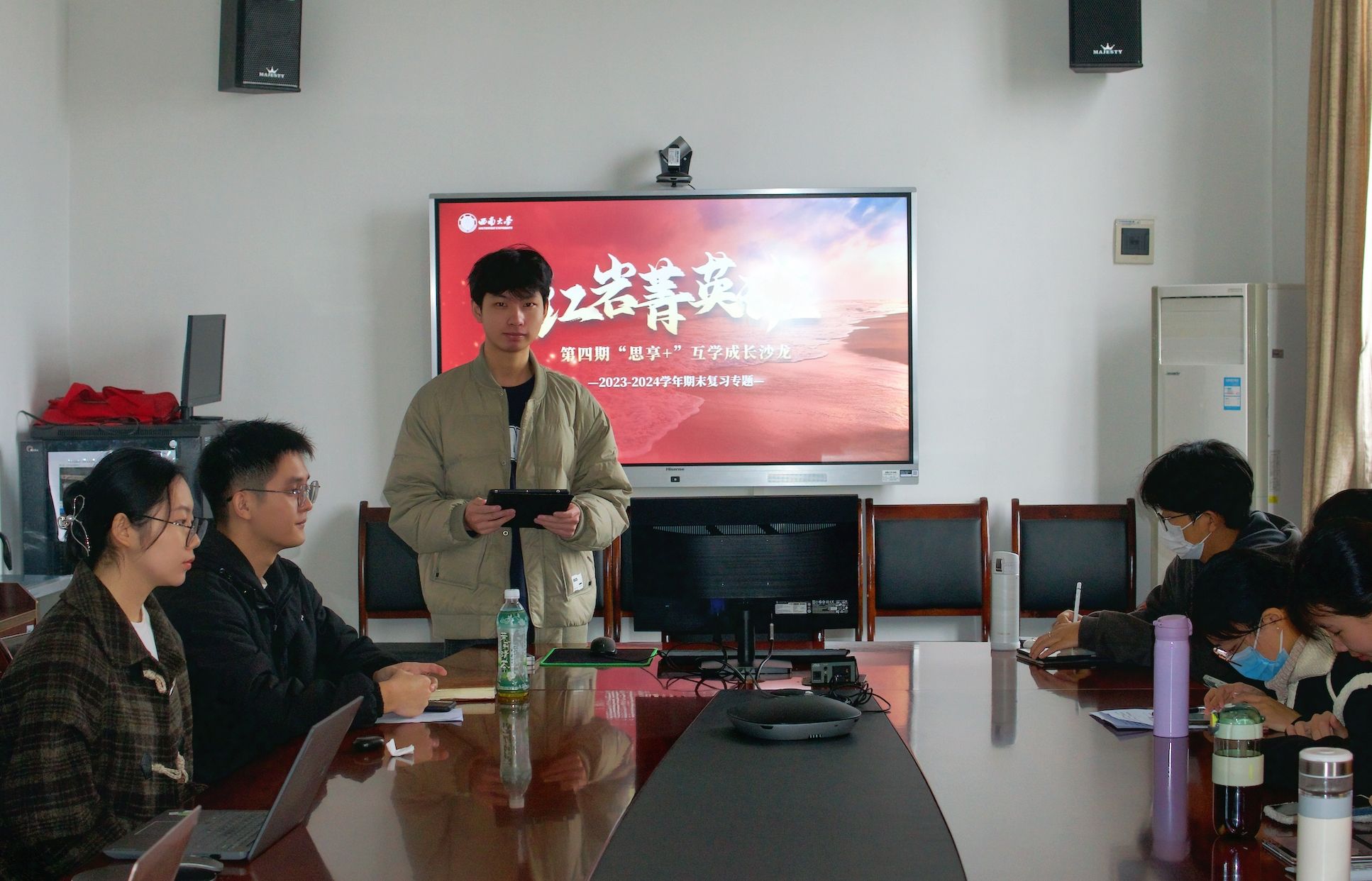 为进一步加强班级学风建设,促进同学们之间的交流学习,营造班级互帮互助的良好学习氛围,12月8日上午,“红岩菁英班”成功举办第四期“思享+”互学成长沙龙。此次活动由团支书王思瑶主持,班级全体成员参与。