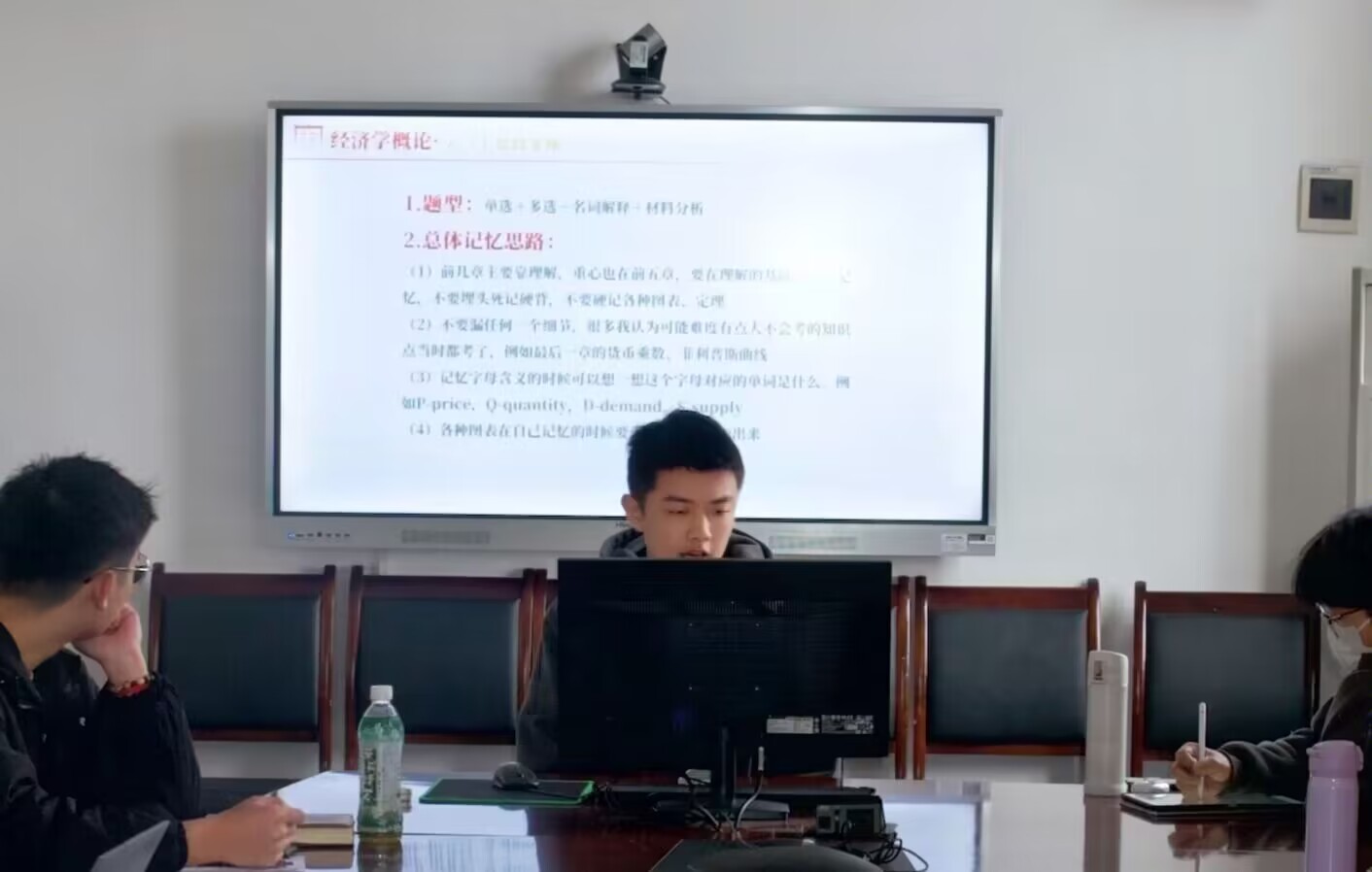 然后,王博言同学对思想政治教育专业的《经济学概论》课程内容中的重点难点以及复习过程中需要注意到的细节问题进行了说明。