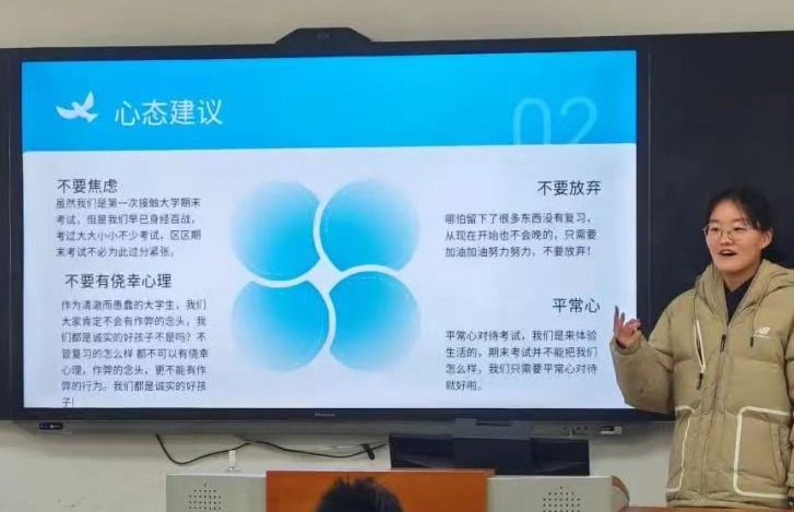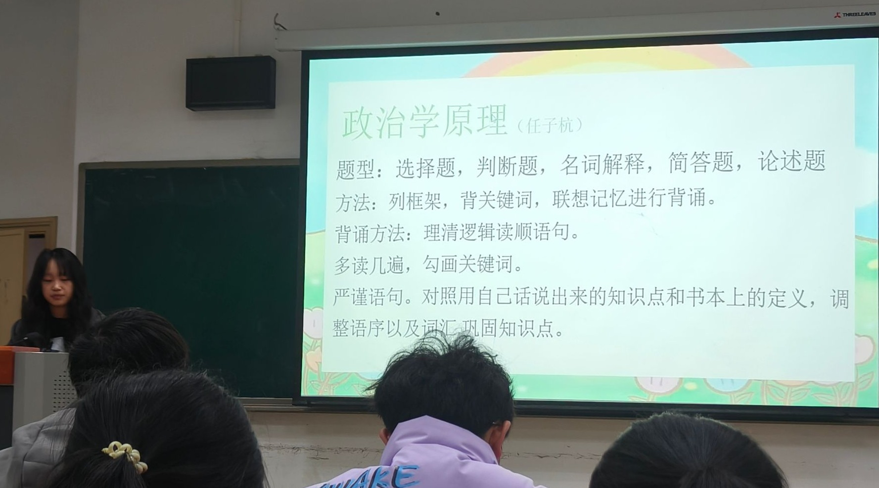 为帮助同学们从容应对即将到来的期末考试,提升备考效率,强化诚信意识,发挥朋辈作用,学院2023级各班有序开展了期末备考经验分享会。