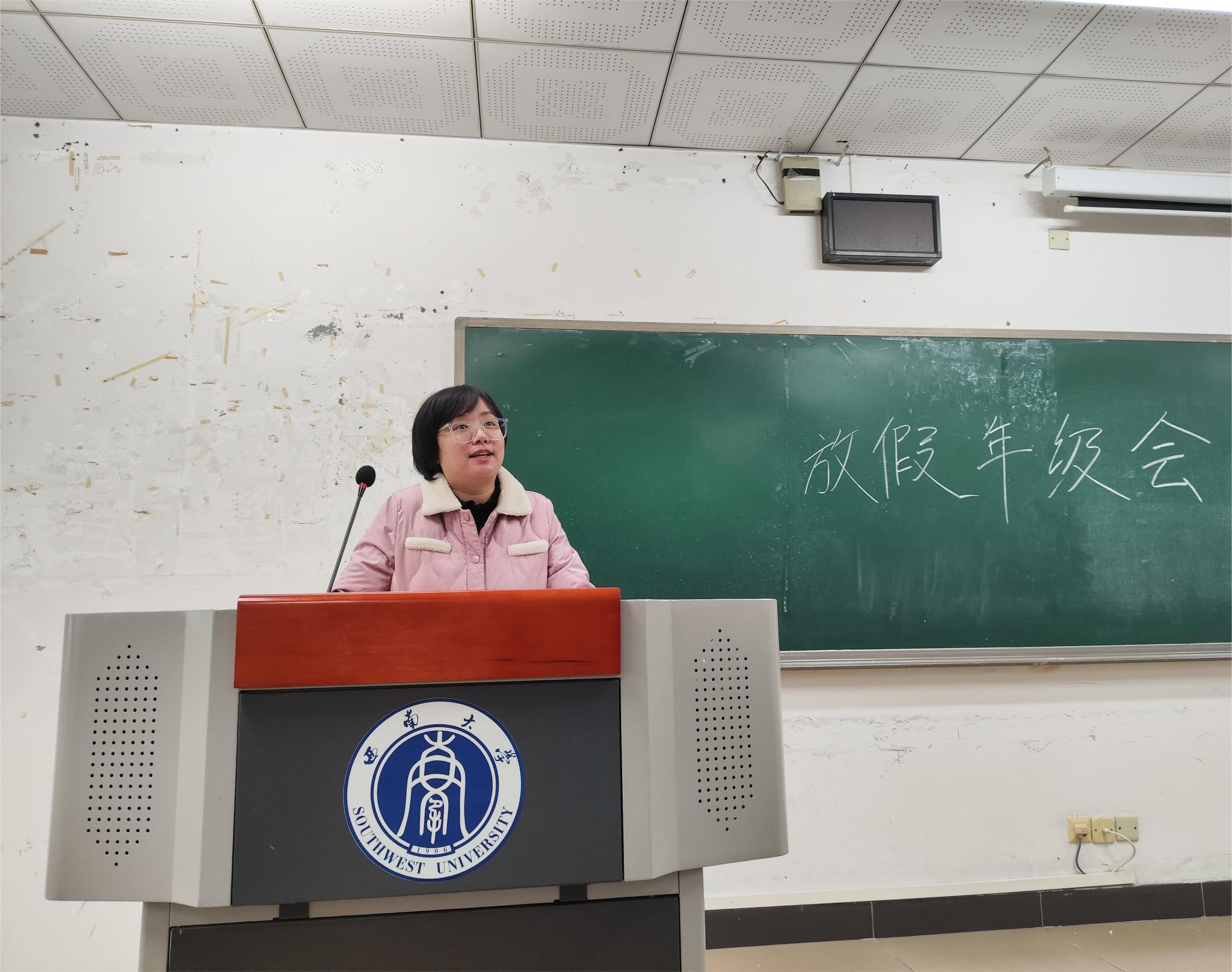 紧接着,吴老师召开寒假放假年级会。会上,吴老师首先对本学期的工作情况和学习情况进行了总结,对同学们在落实学校工作安排和学业上取得的进步表示肯定和祝贺,并鼓励大家在假期中积极参与社会实践活动,保持学习状态,合理安排时间。同时,吴老师也强调了收假时间和假期安全的重要性,提醒同学们注意交通安全、饮食卫生、防范电信诈骗和留校生要注意宿舍安全用电、防火防盗等。年级会的最后,吴老师向全体同学送上了新年的祝福。
