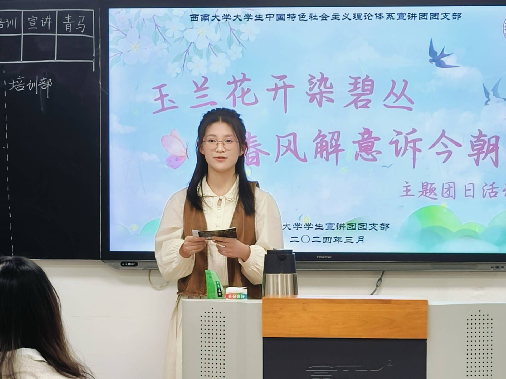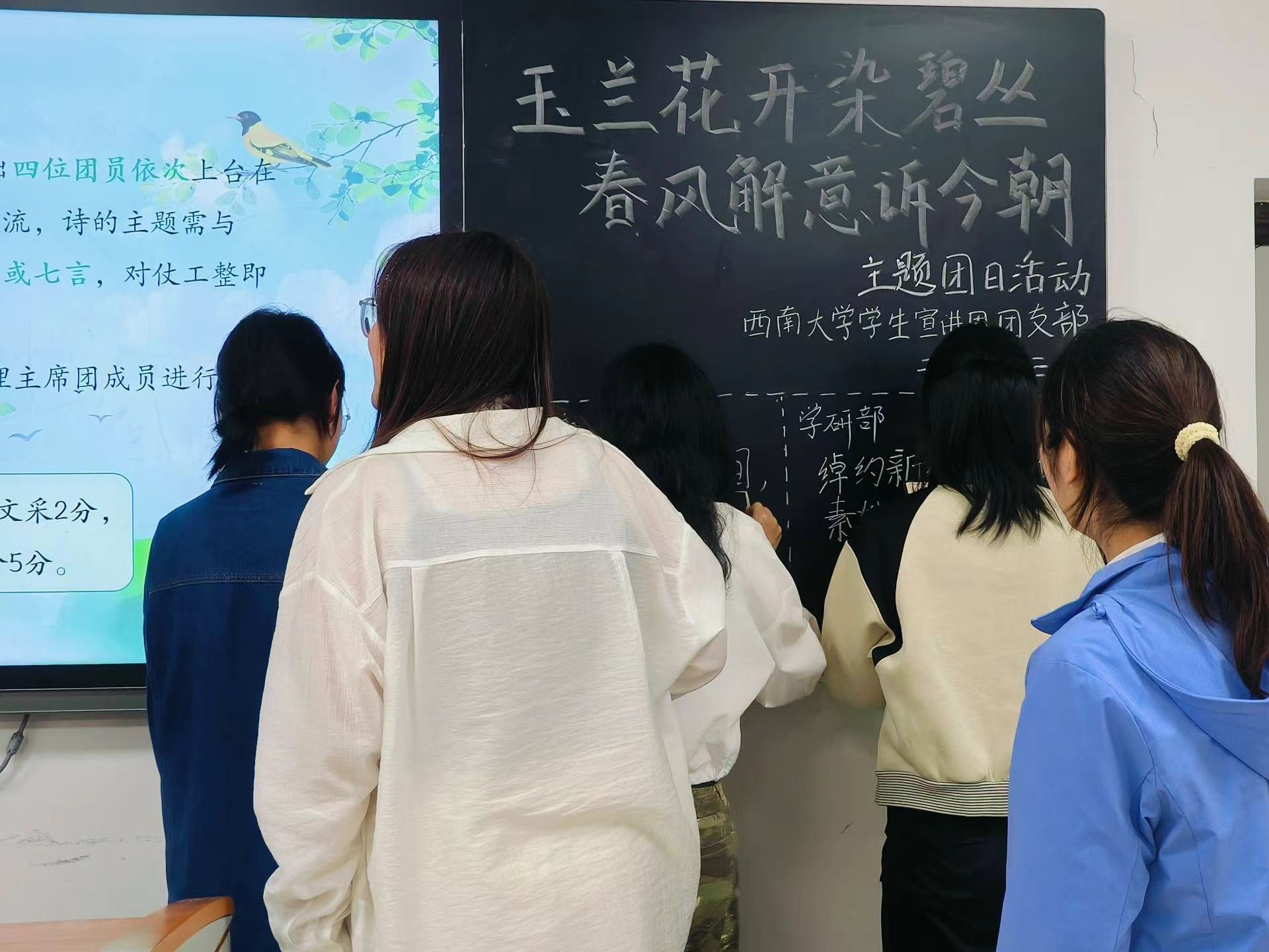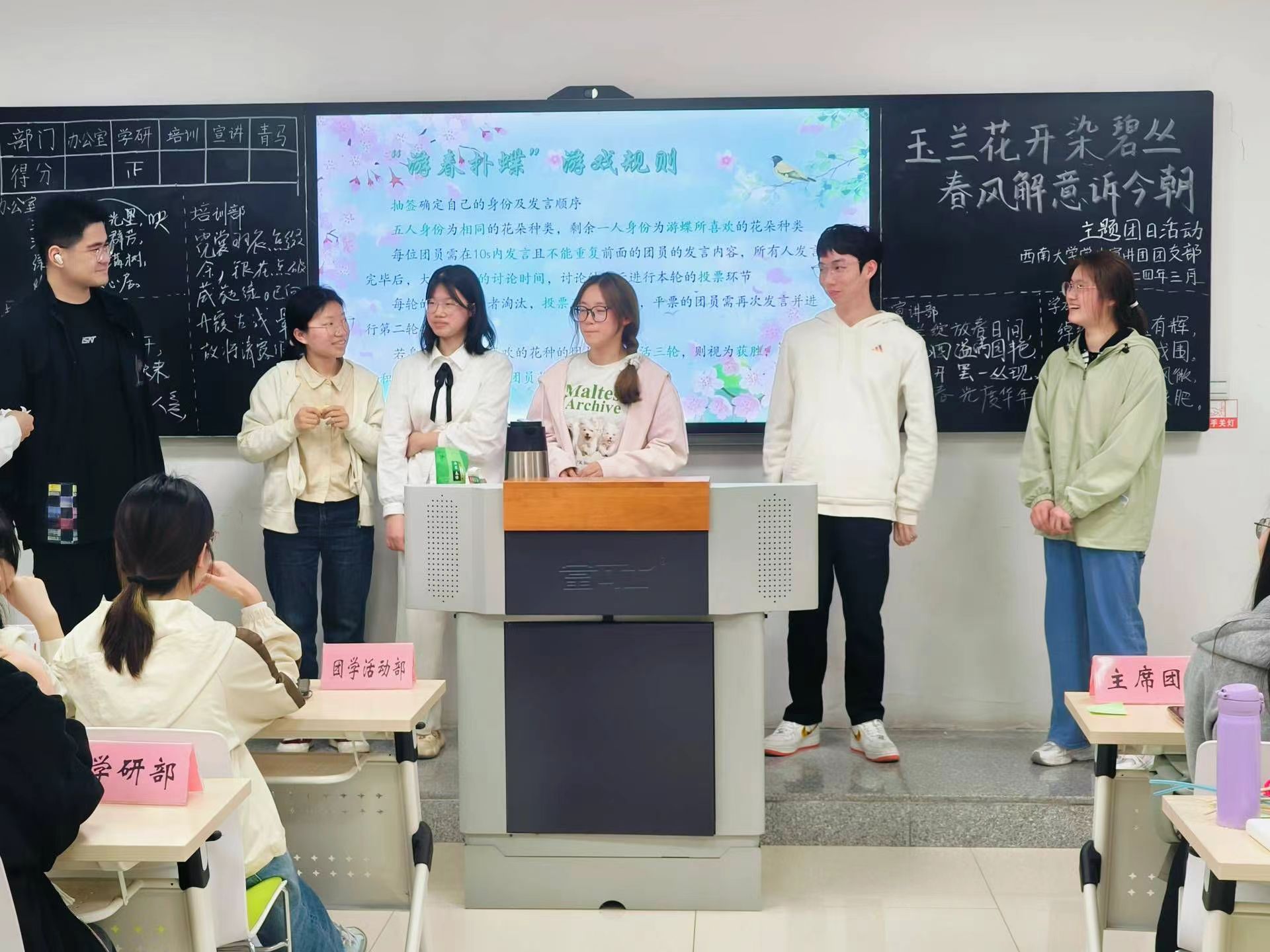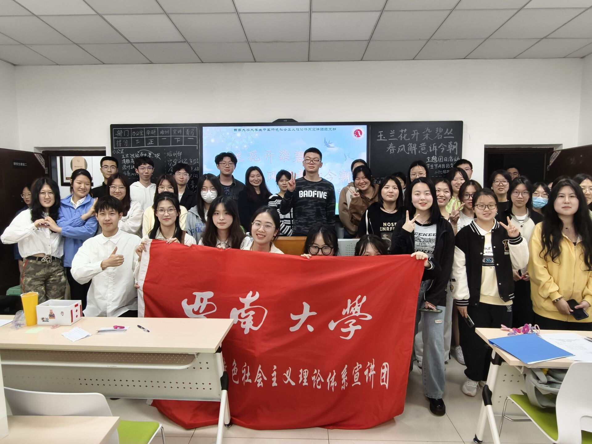 玉兰枝头春意闹,一春更盛一春高。乘着十里春风,我国的传统春日佳节花朝节如约而至。为引导团员们更加深入地了解中华优秀传统文化,珍惜美好春光,西南大学大学生中国特色社会主义理论体系宣讲团团支部(以下简称“学生宣讲团团支部”)特于3月25日22:10在365英国上市集团研究生教室二举办了此次“玉兰花开染碧丛,春风解意诉今朝”主题团日活动。