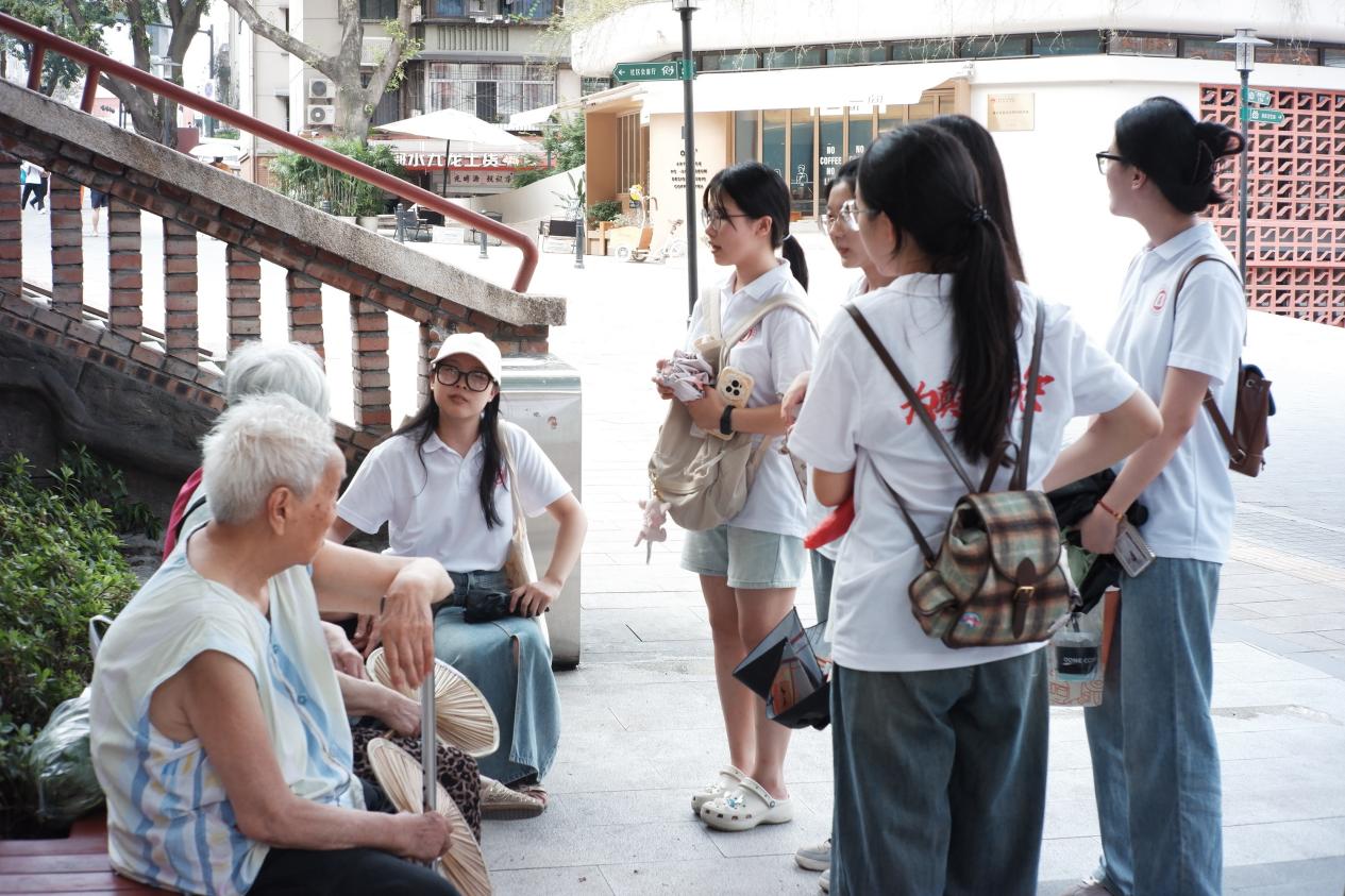 习近平总书记在对民主村社区进行考察时对社区居民强调,中国式现代化,民生为大,中国共产党要做的事情就是让老百姓过上更加幸福的生活。在民主村社区,实践队成员看到了悠闲乘凉的老人、创新创业的青年,也看到了嬉戏游玩的儿童。