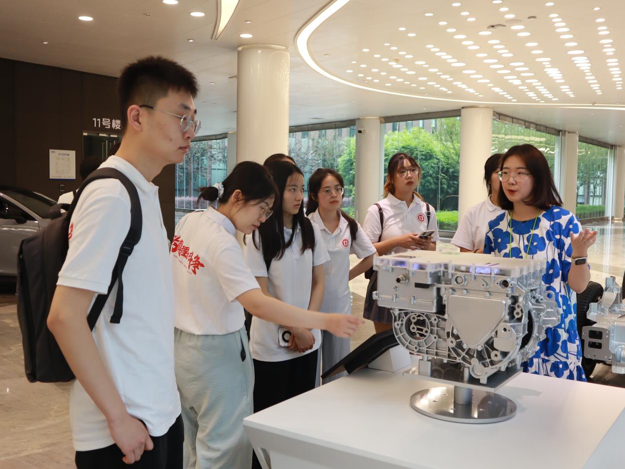 实践队成员深入工厂总装车间,参观了整车生产线的运作。从生产流程到质量控制,从人力运作到智能智造,实践队成员对现代制造业以及新质生产力有了更直观、深入的理解。此外,实践队成员还就党建引领、生产管理与工厂负责人展开了互动交流。