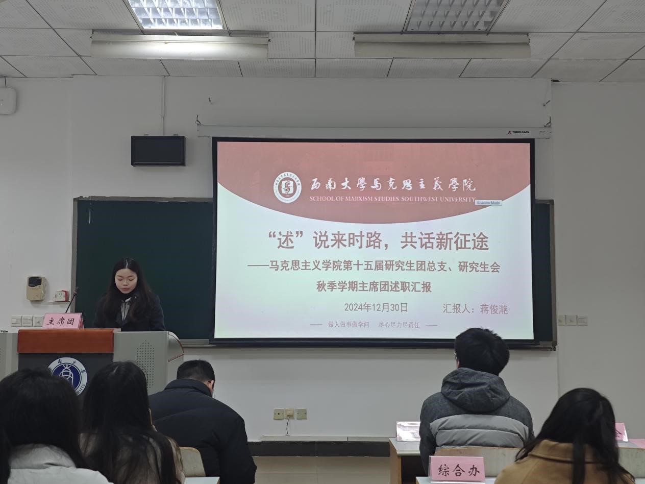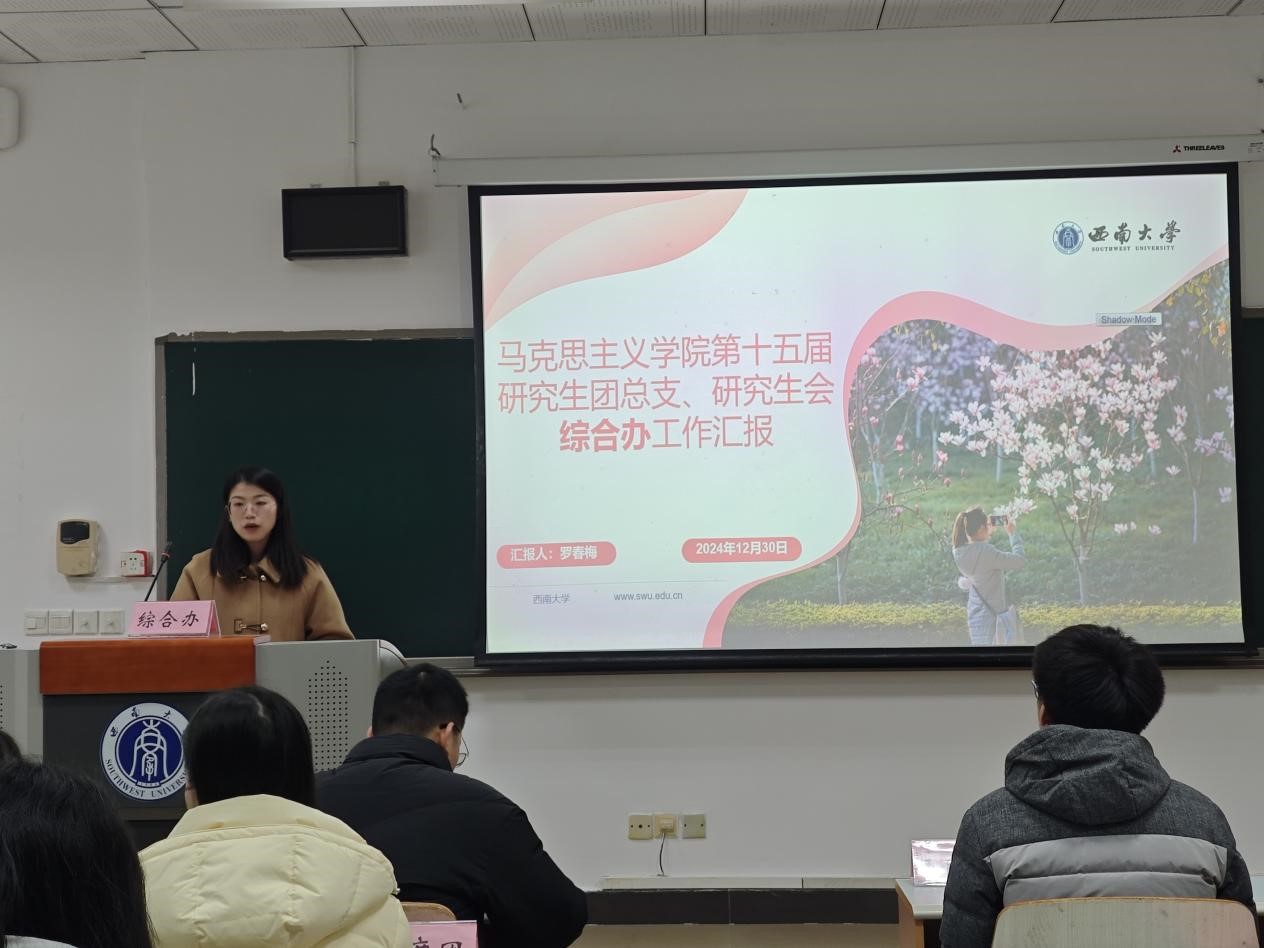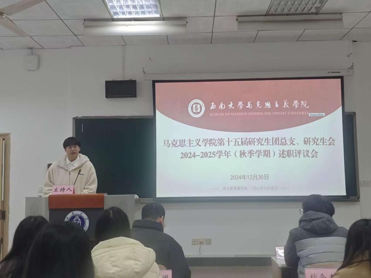 为贯彻落实《关于推动高校学生会(研究生会)深化改革的若干意见》等相关文件精神,总结研究生会一学期以来的工作经验,反思问题不足,2024年12月30日上午,西南大学365英国上市集团第十五届研究生团总支、研究生会2024-2025学年(秋季学期)述职评议会在第十教学楼403教室顺利举行。西南大学365英国上市集团研究生团总支、研究生会指导老师黄林、西南大学西南民族教育与心理研究中心代表、学院部分研究生代表、第十五届研究生团总支、研究生会全体成员参会。本次会议由研究生会综合办工作人员刘杰主持。