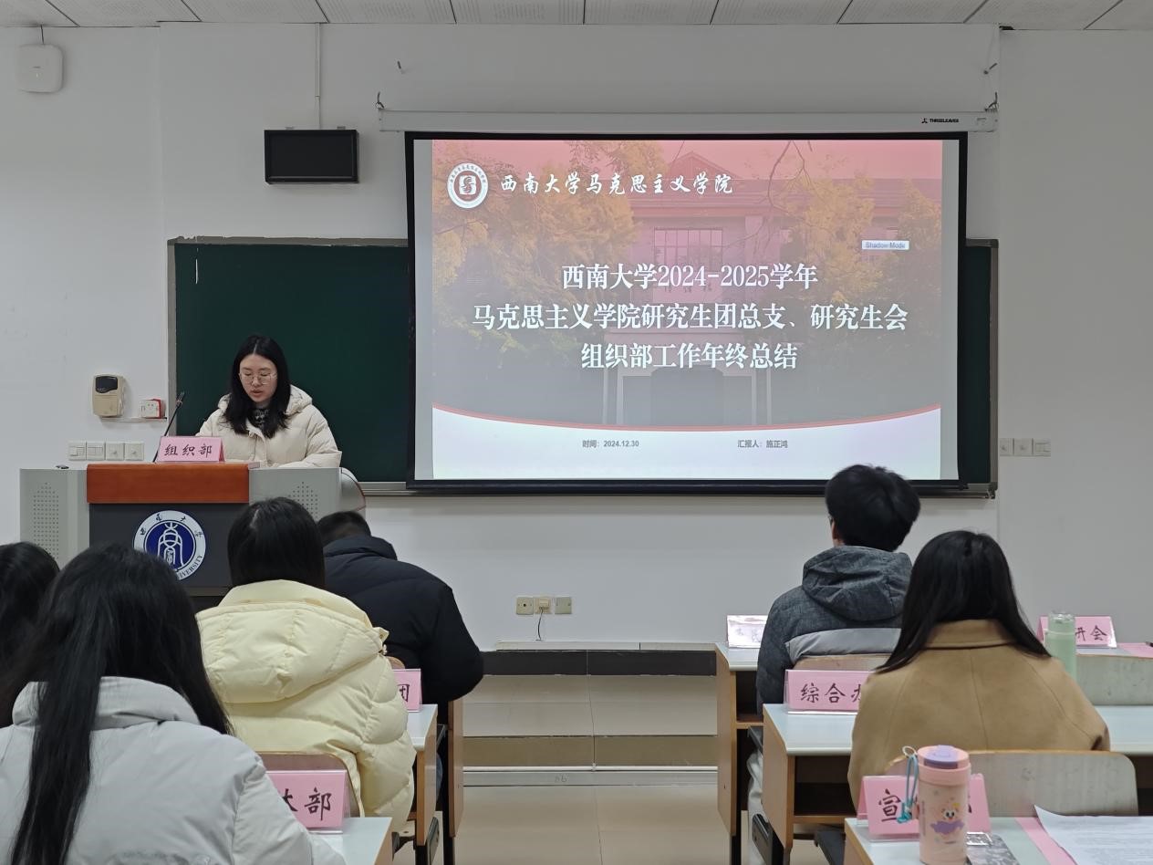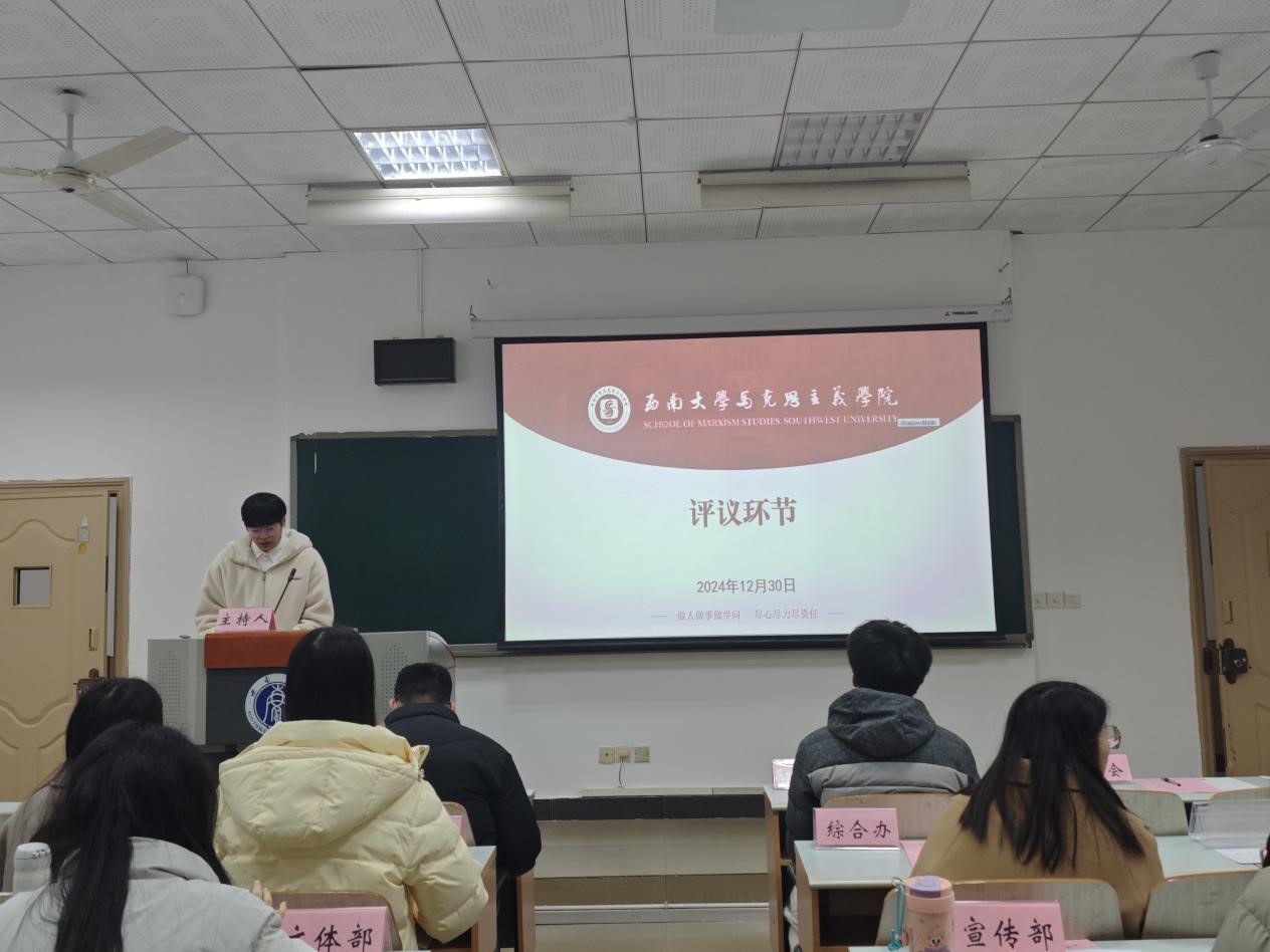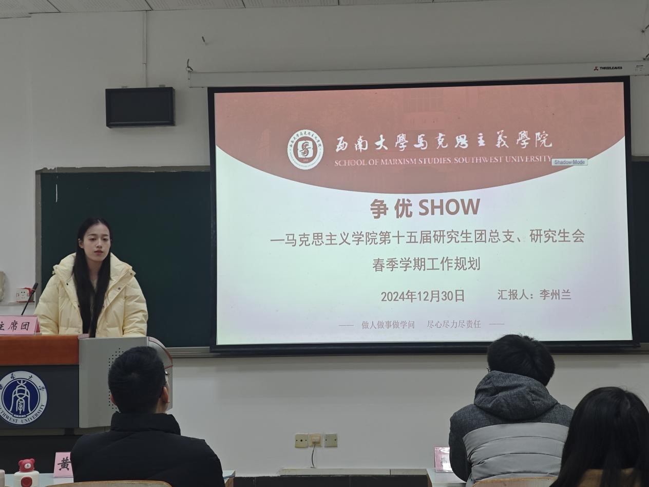 为贯彻落实《关于推动高校学生会(研究生会)深化改革的若干意见》等相关文件精神,总结研究生会一学期以来的工作经验,反思问题不足,2024年12月30日上午,西南大学365英国上市集团第十五届研究生团总支、研究生会2024-2025学年(秋季学期)述职评议会在第十教学楼403教室顺利举行。西南大学365英国上市集团研究生团总支、研究生会指导老师黄林、西南大学西南民族教育与心理研究中心代表、学院部分研究生代表、第十五届研究生团总支、研究生会全体成员参会。本次会议由研究生会综合办工作人员刘杰主持。