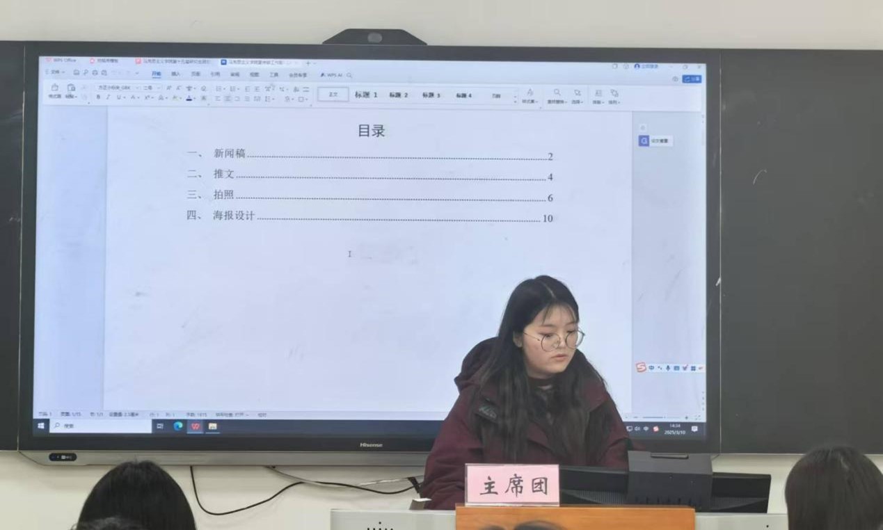 主席团成员谭亚婷开展了新闻稿写作专题培训。她详细讲解了新闻稿撰写的具体要求,包括内容表达、格式规范及照片拍摄技巧等,有效帮助成员们掌握新闻稿写作技能。