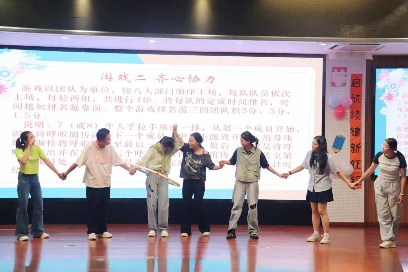 精彩节目之间,趣味游戏轮番上阵,将晚会氛围推向高潮。一张薄纸的“长途跋涉”,桌前两侧“狭路争瓶”……于考验中协作,将忙而不乱的团队素养悄然打磨。