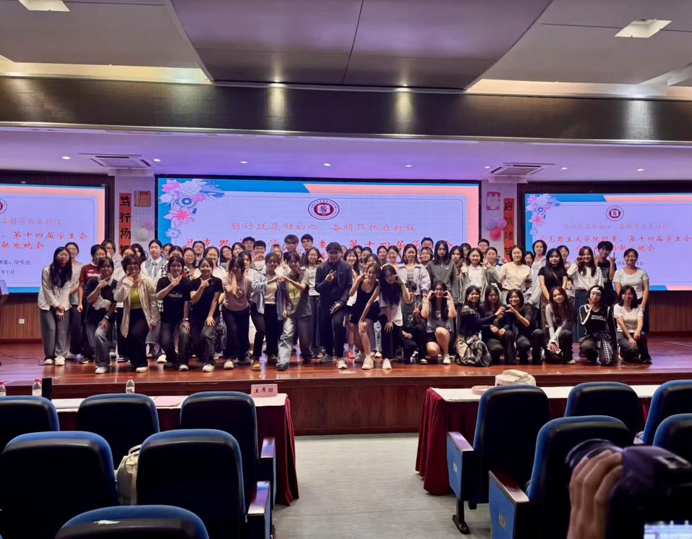 19时,学院第十四届学生会成立大会正式开始。会上,全体成员合唱《光荣啊!中国共青团》,展现马院学子朝气蓬勃的精神风貌。