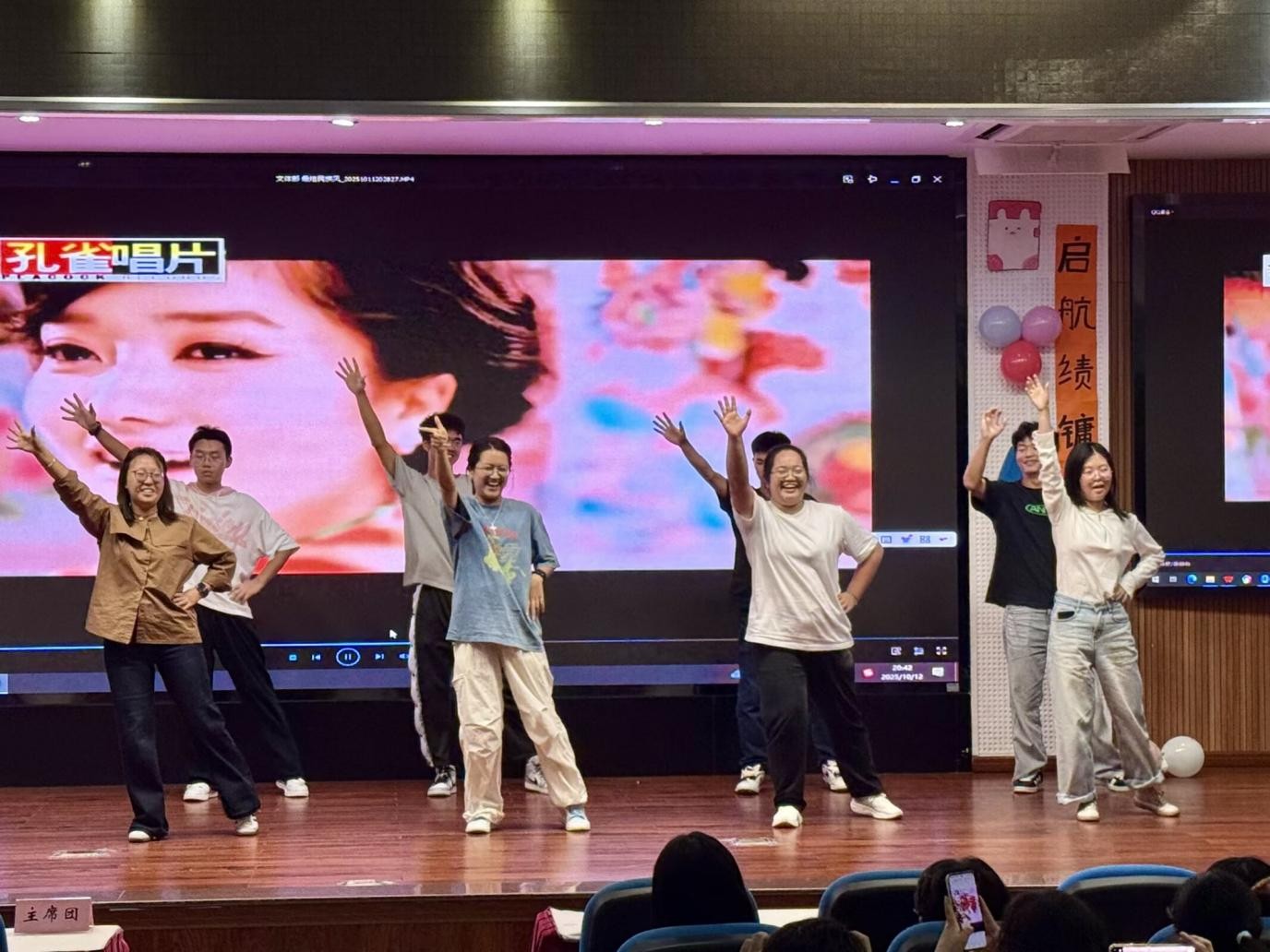 接下来,学院第十四届学生会联欢晚会正式启幕。各部门依次带来《明天会更好》 《相亲相爱》等歌舞表演,旋律与舞步之间,既呈现出各部门的独特风采,更借这份鲜活氛围,为新一届学生会开启工作的新航程。