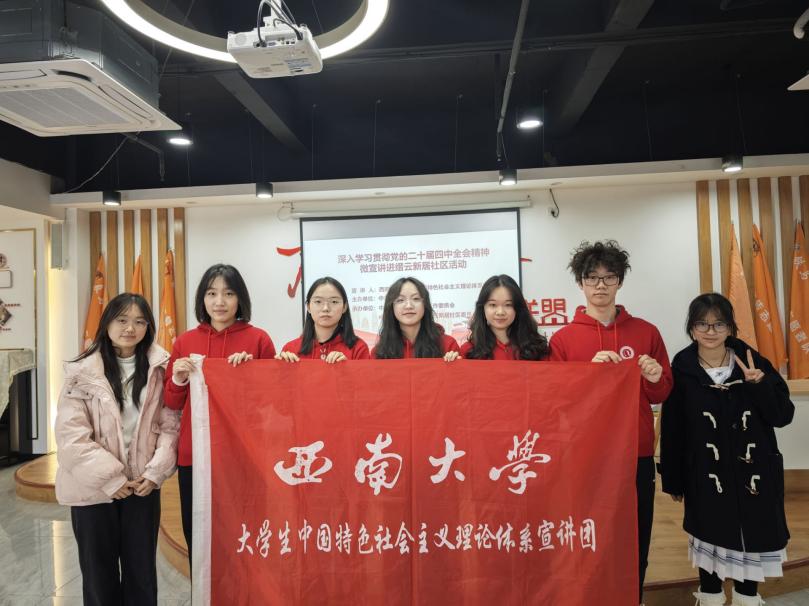 2025年11月28日,西南大学大学生中国特色社会主义理论体系宣讲团携手缙云新居社区,成功举办“时代新声传万家,潮头问道启新程”党的二十届四中全会主题宣讲活动,深入解读党的二十届四中全会精神,生动描绘“十五五”发展蓝图。