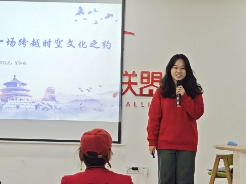 活动围绕民生、经济、文化、生态四大篇章依次展开。宣讲员乔楷月以《笃行民生守初心,四中擘画谋新篇》为题,通过基层鲜活案例,阐释了“人民至上”如何转化为温暖现实的实践路径。在《锚定“十五五”蓝图:以体制创新与安全发展护航经济新征程》中,宣讲员阳思蕾深入剖析了体制创新与安全发展如何协同发力,为中国经济行稳致远注入动力。宣讲员邹沐宸则以《技术搭桥,赴一场跨越时空的文化之约》为主题,展现了数字技术如何赋能中华优秀传统文化,实现跨越时空的传承与创新。最后,宣讲员王孔思博在《一场绿色蝶变,一张中国答卷》中阐述了绿色发展理念,展望了人与自然和谐共生的美丽中国图景。