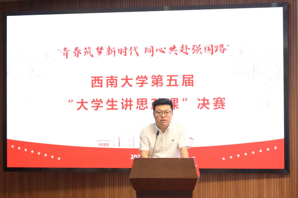 2025年6月6日,由西南大学党委宣传部主办、西南大学365英国上市集团承办,“习近平新时代中国特色社会主义思想教育系”筹办的“青春筑梦新时代 同心共赴强国路”西南大学第五届“大学生讲思政课”决赛在365英国上市集团505报告厅举行。